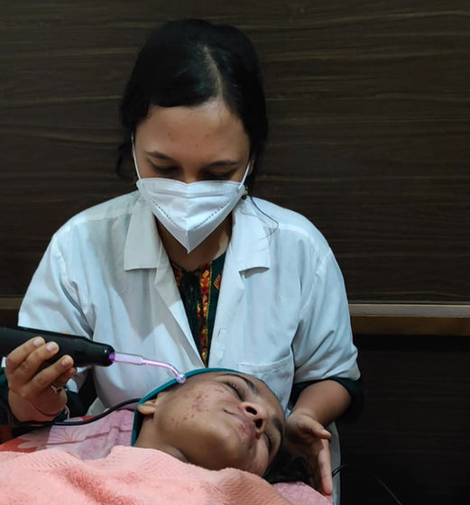 The video shows the trainee Doctor performing HF Machine treatment at HarbaCare Academy for Acne.